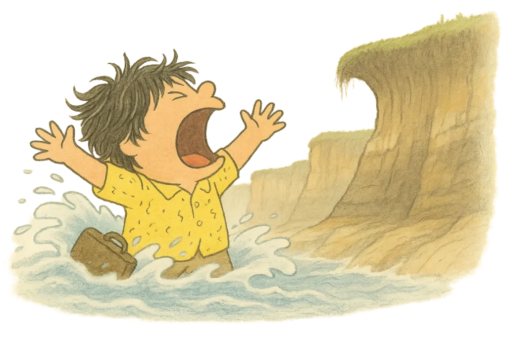 波に追い詰められた決死の哀れな旅人 「歩いて行けるやん!」──あのときの自分を、... -